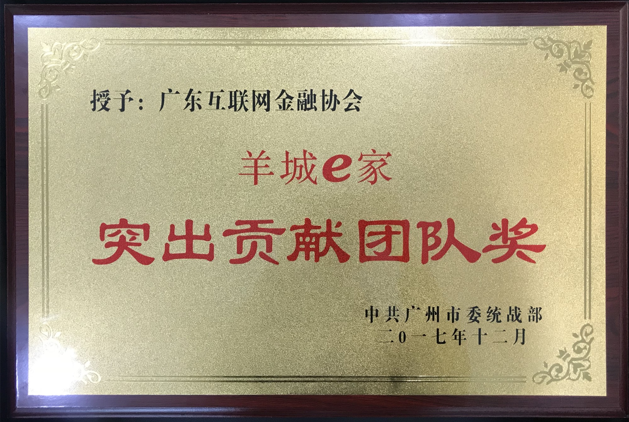 为表彰我会对“羊城e家”活动的大力支持,在昨日新一期羊城e家广州互联网论坛——“移动互联经济新动力”上,中共广州市委统战部为我会颁发羊城e家“突出贡献团队奖”。
