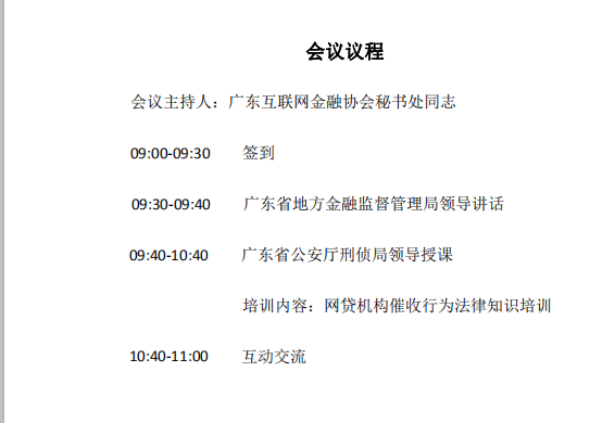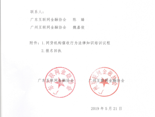 2019年5月24日,广东互联网金融协会联合广州互联网金融协会在广州成功举办“网贷机构催收行为法律知识培训会”。广东省地方金融监管局相关同志参加会议并致辞,广东省公安厅刑侦局相关同志作了专题授课,广州市地方金融监管局相关同志出席会议。全省100余网贷机构相关负责人参与了培训。